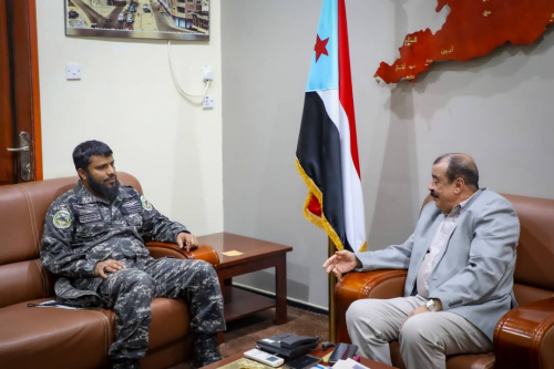Major General Bin Brik discusses with Brigadier Ahmed Bin Afif issues related to protection of facilities The Chairman of the National Assembly of the Southern Transitional Council, Major General Ahmed Saee...