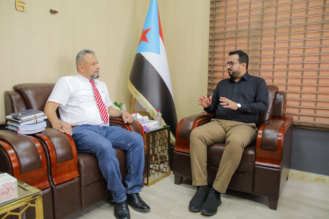 Al-Awlaqi Meets with Program Director of German Friedrich Ebert Stiftung Foundation Mr. Salem Thabet Al-Awlaqi, head of the National Southern Media Authority (NSMA), assisting the Pres...