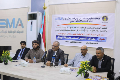 The Media Information Department of the General Secretariat of the Presidency of the Southern Transitional Council, in coordination with Training and Rehabilitation Sector of National Southern Media Authority, launched on Tuesday, in the capital, Aden, a training workshop on “journalistic editing skills and mobile journalism”, for the media people of the two leaderships of the Council in the governorates of Al-Mahra and Socotra, under the auspices of President Aidarous Qassem Al-Zubaidi, the President of the Southern Transitional Council.