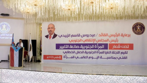 The Supreme Committee for Southern Women organized a speech and artistic ceremony, on Tuesday, in the capital, Aden, on the occasion of International Woman’s Day, under the slogan “Southern Woman, the Maker of Change,” under the generous patronage of President Aidarous Qassem Al-Zubaidi, the President of the Southern Transitional Council, and in the presence of members of the Presidency of the Transitional Council, Dr. Naser Al-Khubaji, Head of Negotiations Affairs Unit in the Council, and Lawyer Niran Sooki, Vice Chairman of the National Assembly, and Dr. Suhair Ali Ahmed.