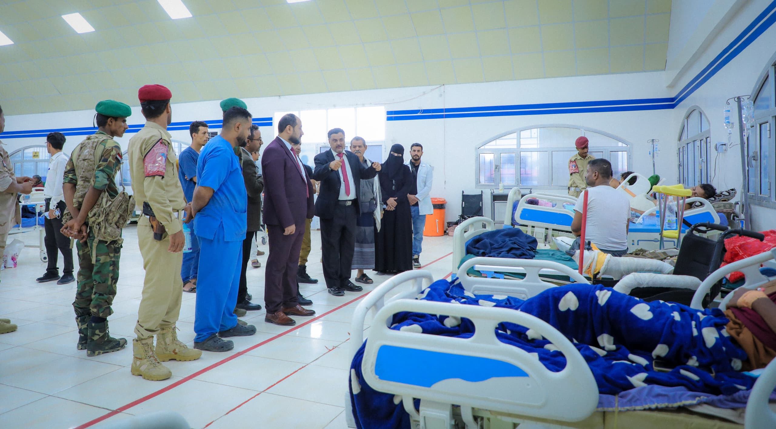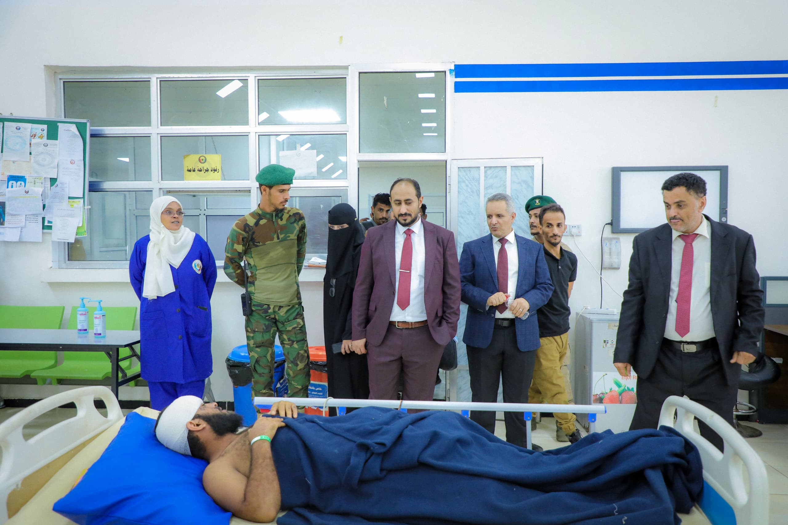 During the visit, the secretary-general checked on the conditions of the wounded patients receiving treatment in the hospital and highly lauded their heroism and the immense sacrifices they have been making in defense of the Southern homeland and its dignity and in confronting the Houthi militia and terrorist organizations, wishing them a speedy recovery and continued constant good health.