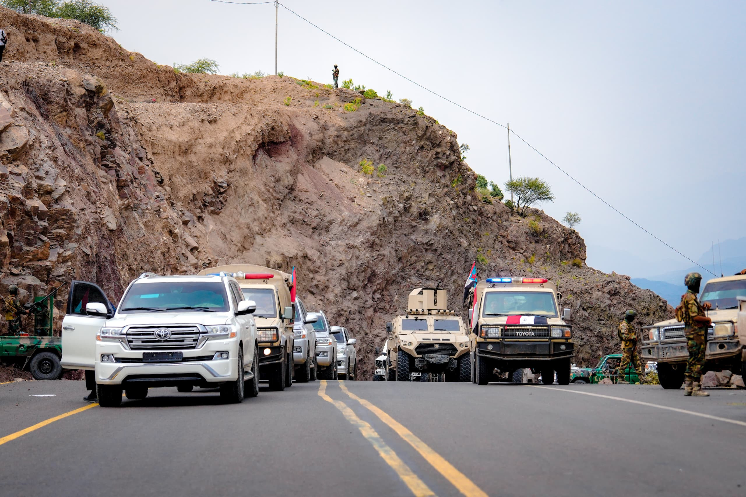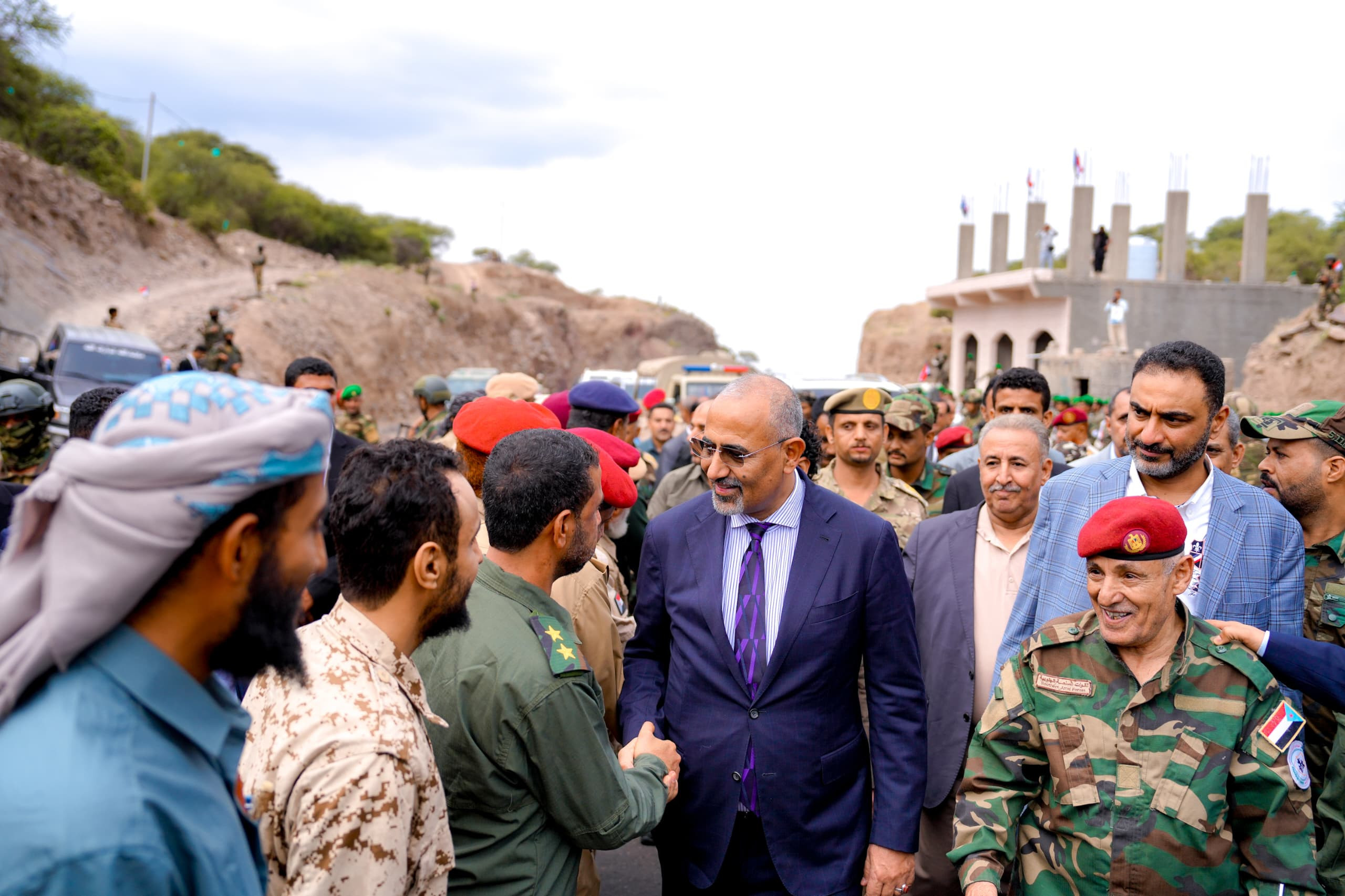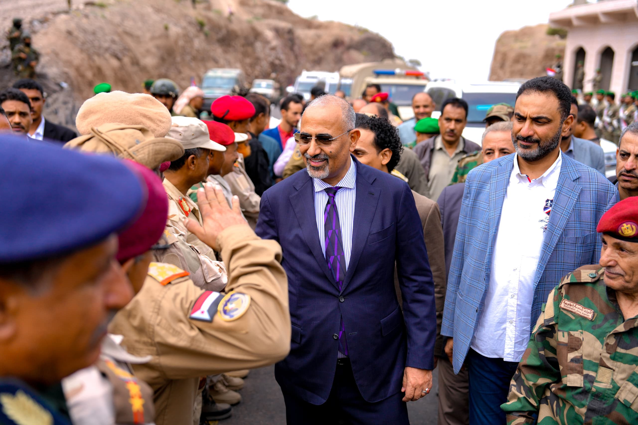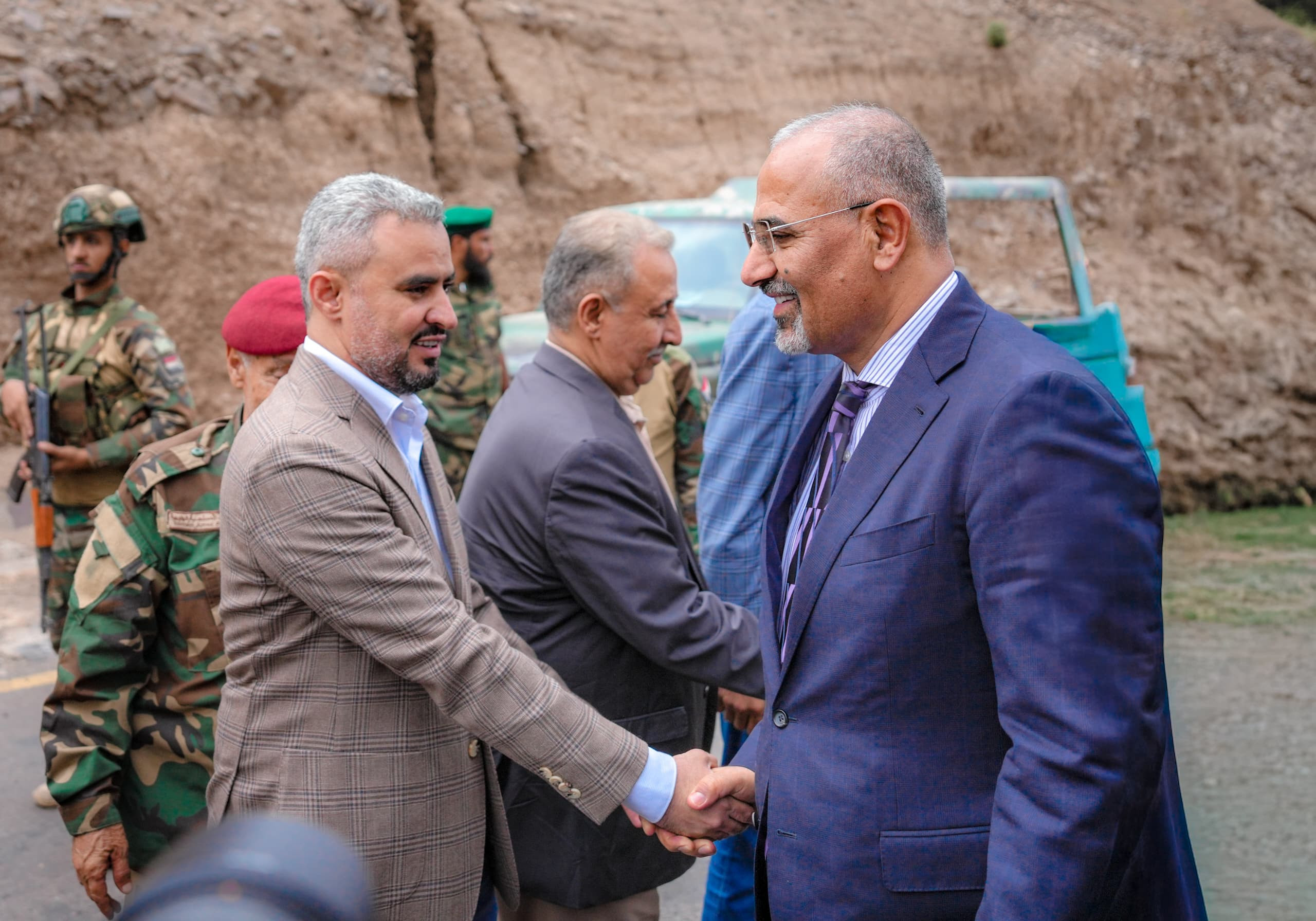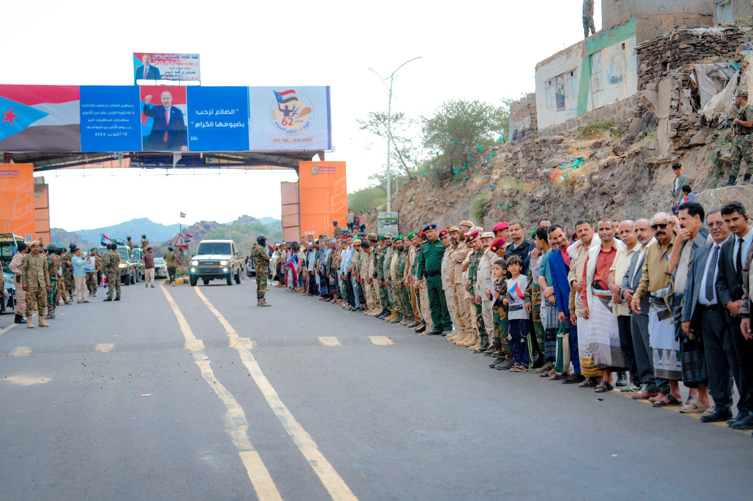 Upon his arrival in Al Dhale'a, the President was received by the governor of the governorate, Major General Ali Muqbil Saleh; Sheikh Abdulaziz Al-Jifri, a member of the STC Presidium and head of the Presidential Monitoring and Guidance Team; Ahmed Al-Rubaizi, deputy chairman of the Board of Advisors; Staff Brigadier General Abdullah Mahdi Saeed, head of the Local Leadership Executive Body (LLEB) of the STC and head of Joint Operations in the governorate; and a number of political, military, and security leaders in the governorate.