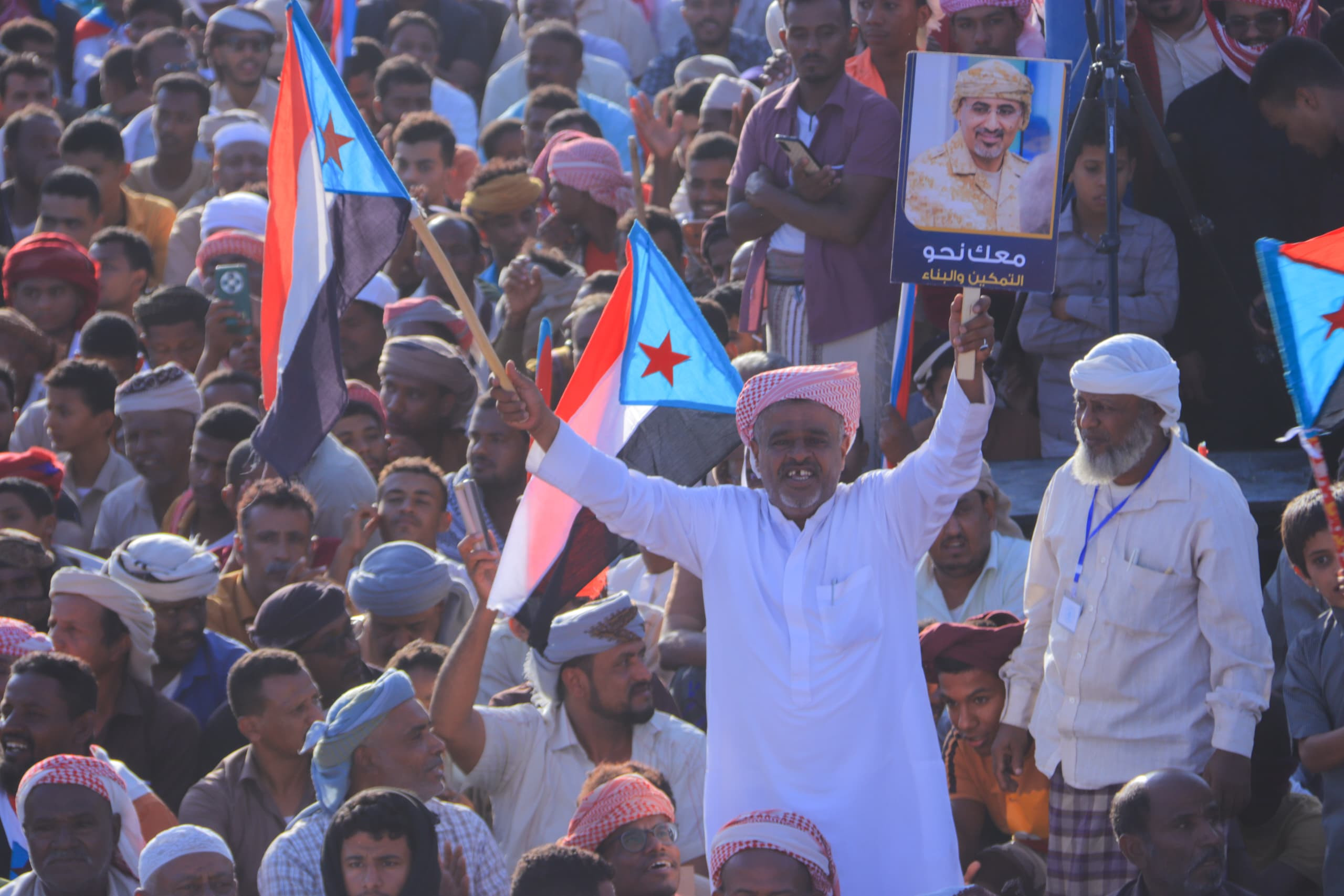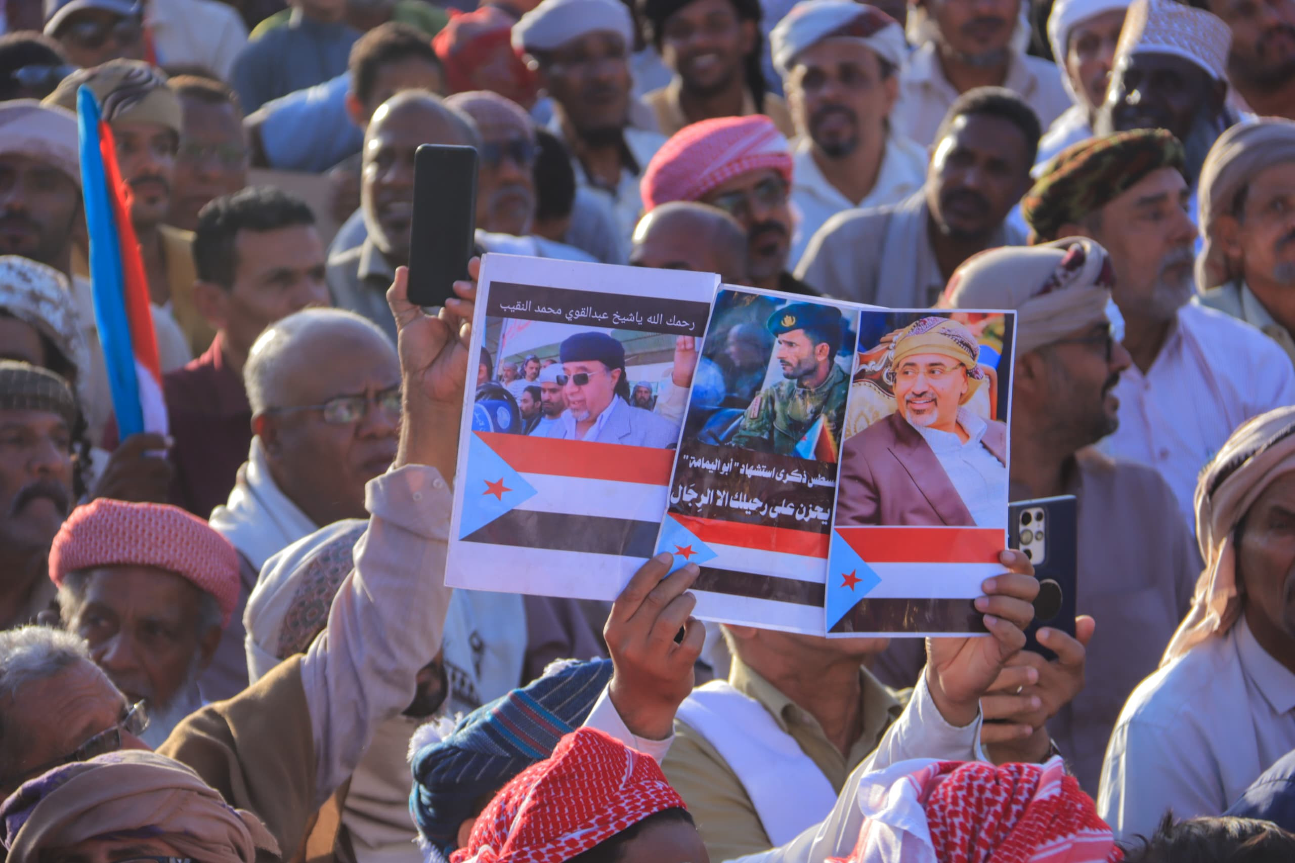 The gathered crowd chanted slogans affirming their commitment to the Southern identity and their rejection of any external guardianship over Hadhramaut, alongside affirming their support for the Hadhrami Elite Forces and their resolve to proceed towards restoring the independent state of the South.