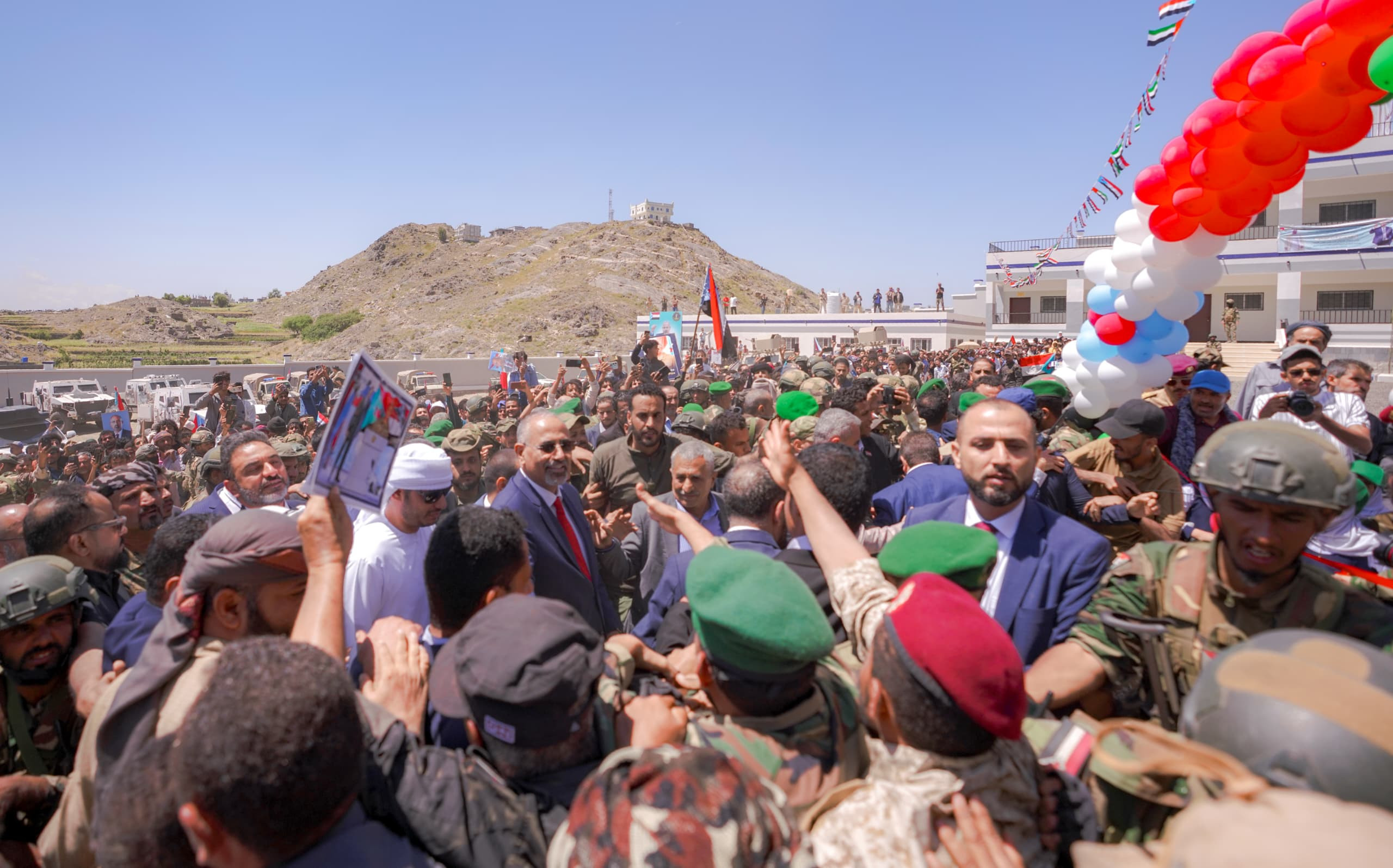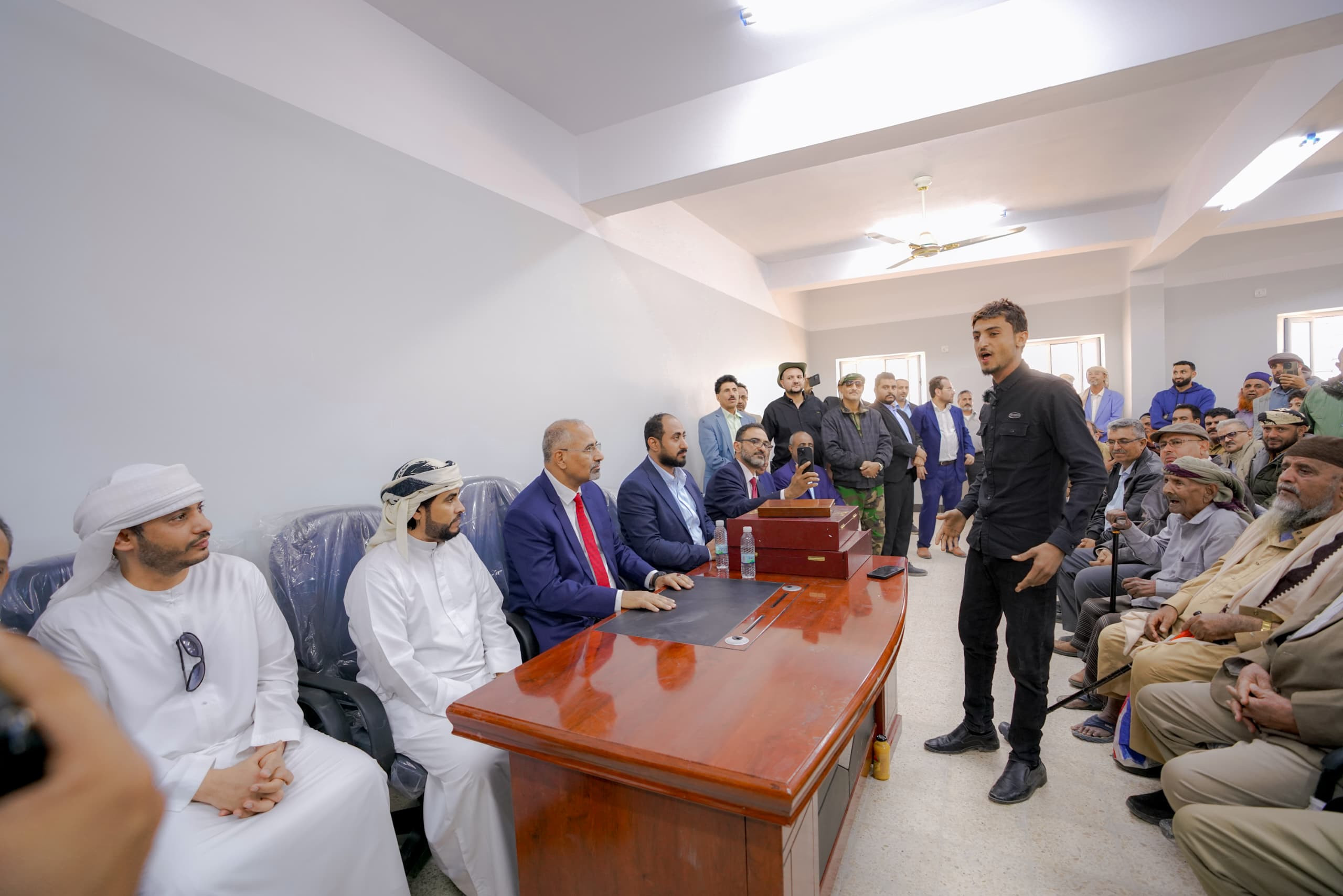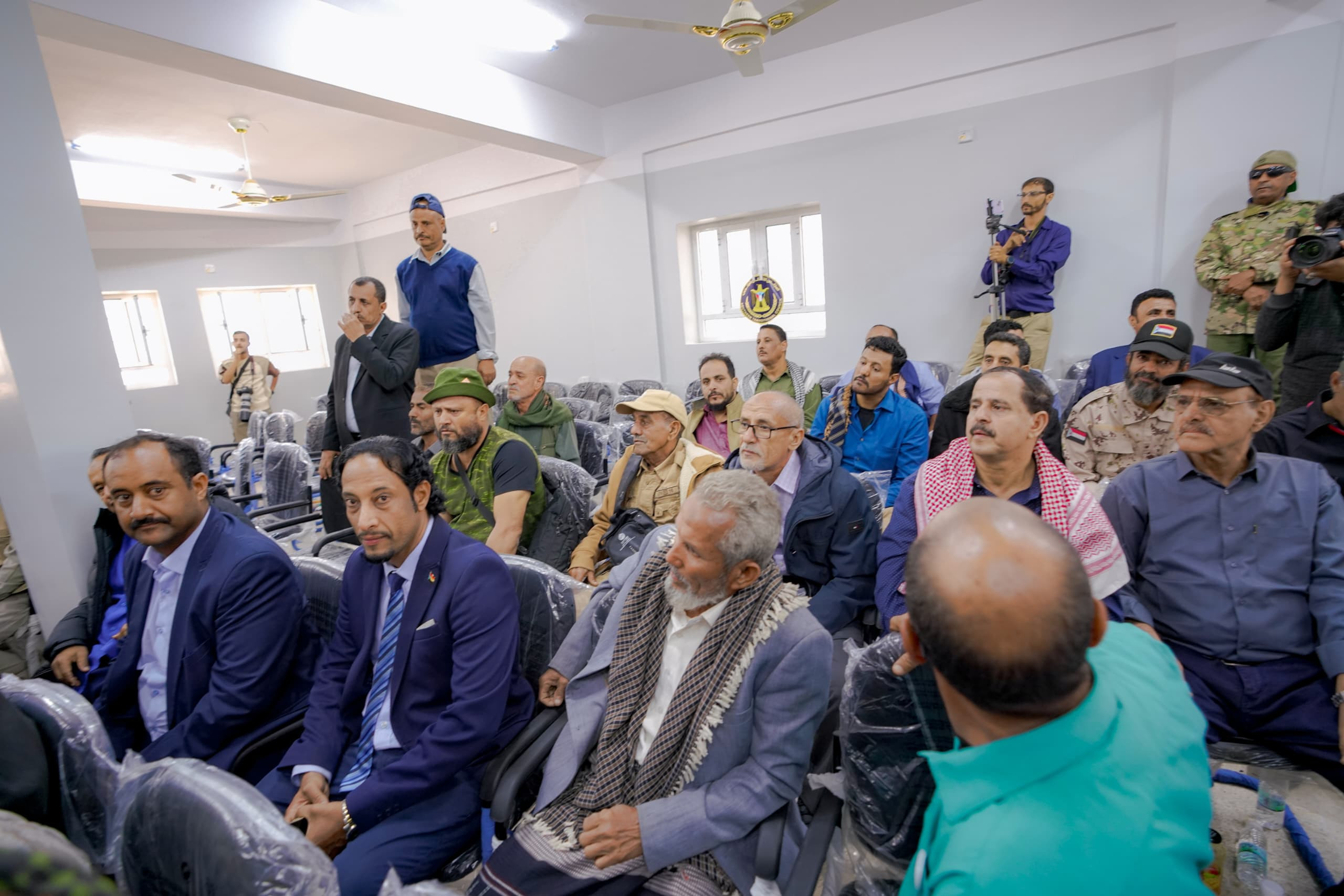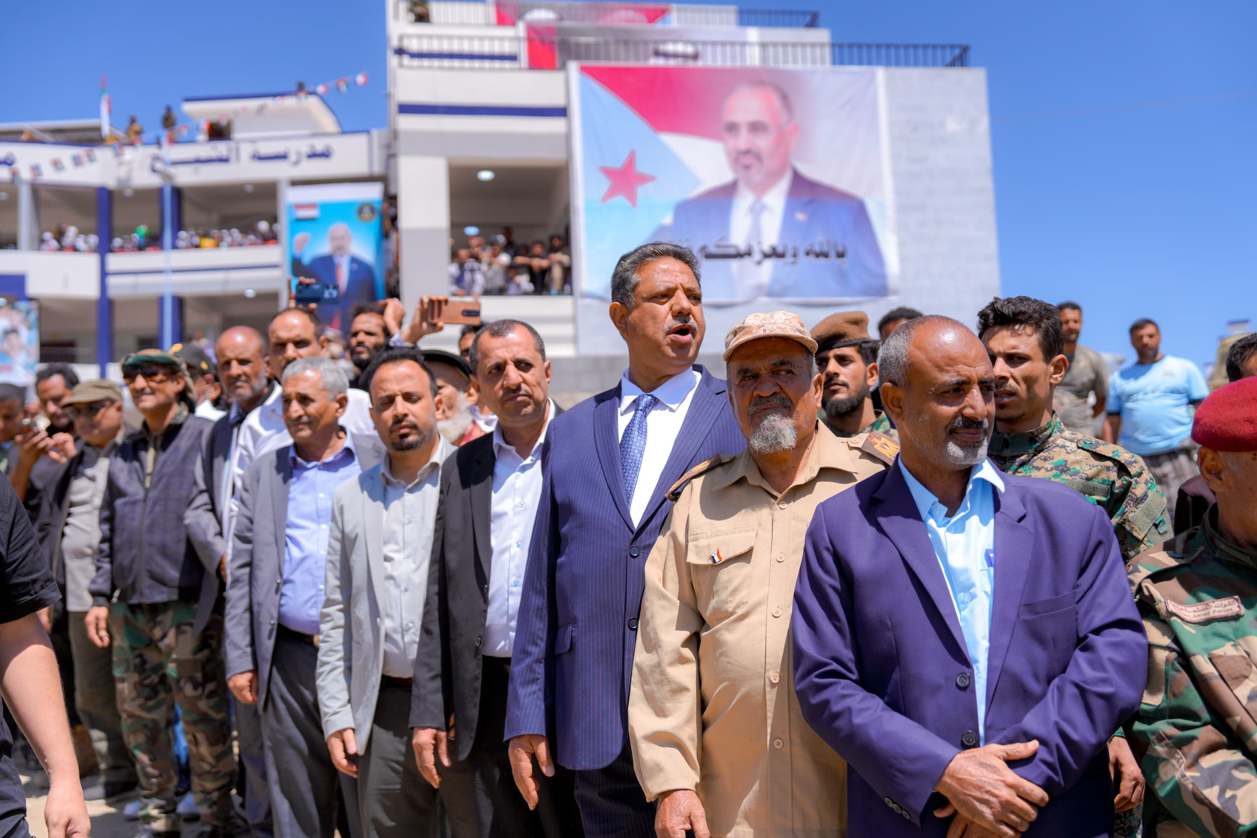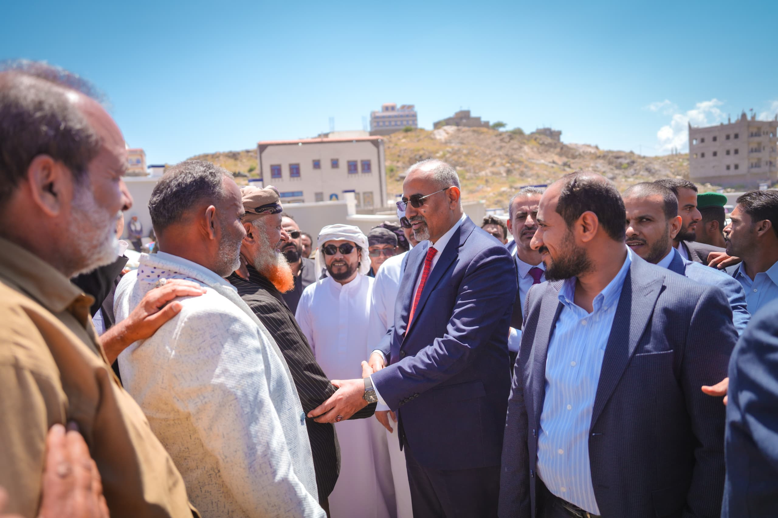 In his remarks to the local authority officials in Al-Shu'aib district, President Al-Zubaidi noted that the construction of this educational edifice in the district is in appreciation and recognition of the sacrifices and contributions made by Al-Shu'aib to the resistance during the war waged by the Houthi militias and throughout the Southern Liberation Revolution until today.