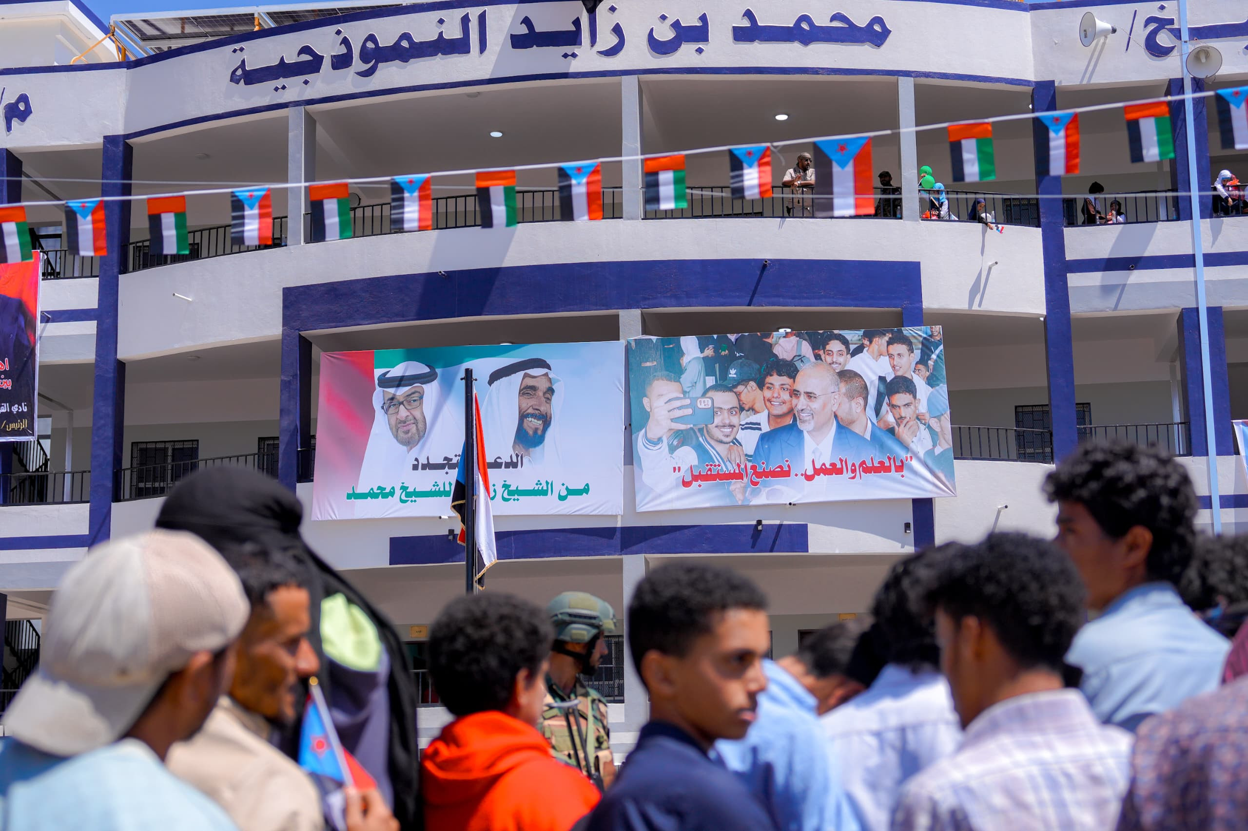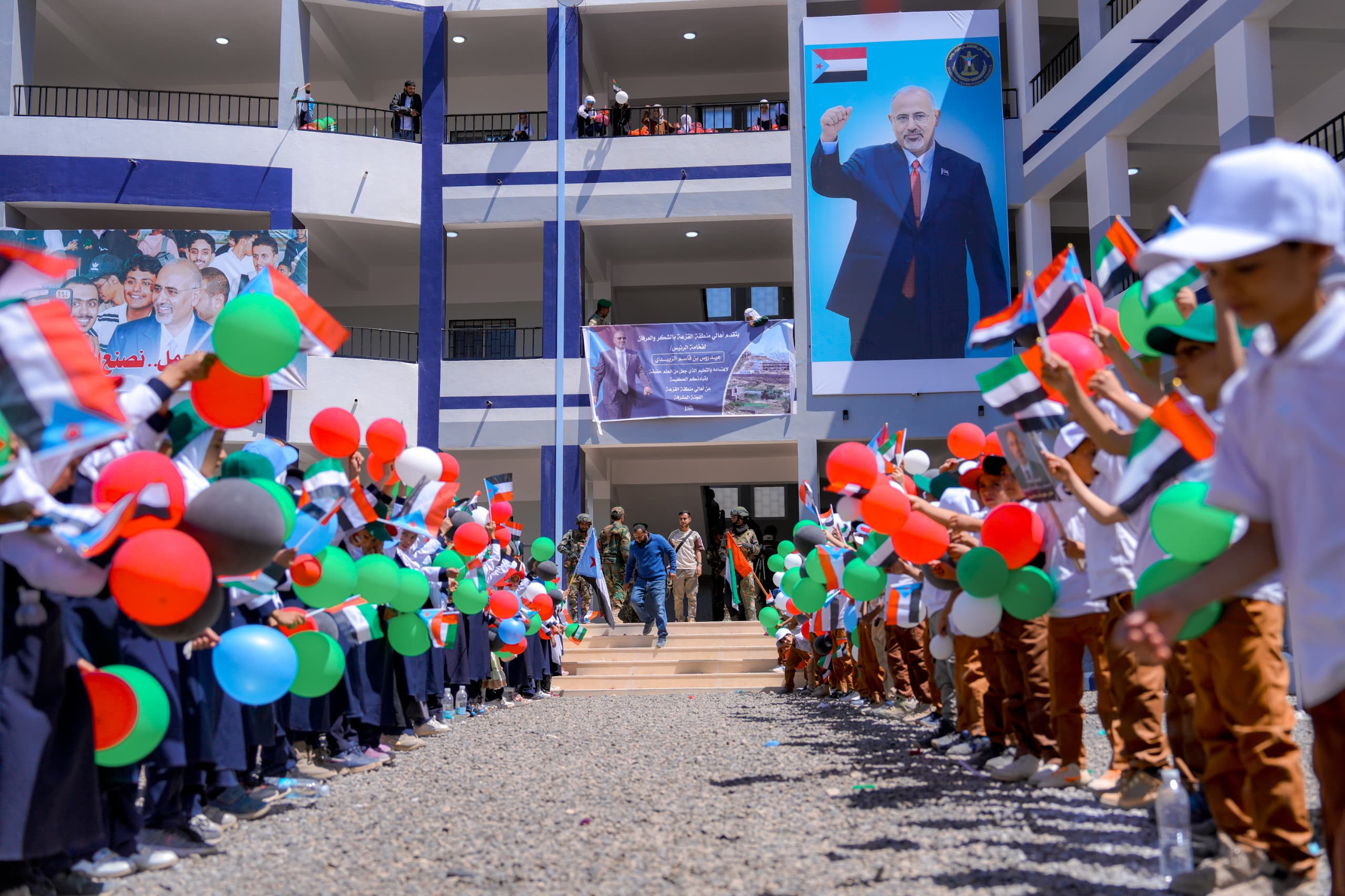 For his part, the Director-General of the district, Rouf Al-Ja'fari, expressed his gratitude and appreciation, on behalf of the people of the district, to President Al-Zubaidi and HH Sheikh Mohammed bin Zayed for their support to the district and their contribution to driving development in it, reaffirming that the presence of such modern educational complexes would contribute to preparing a generation armed with knowledge, learning, and modern science skills.