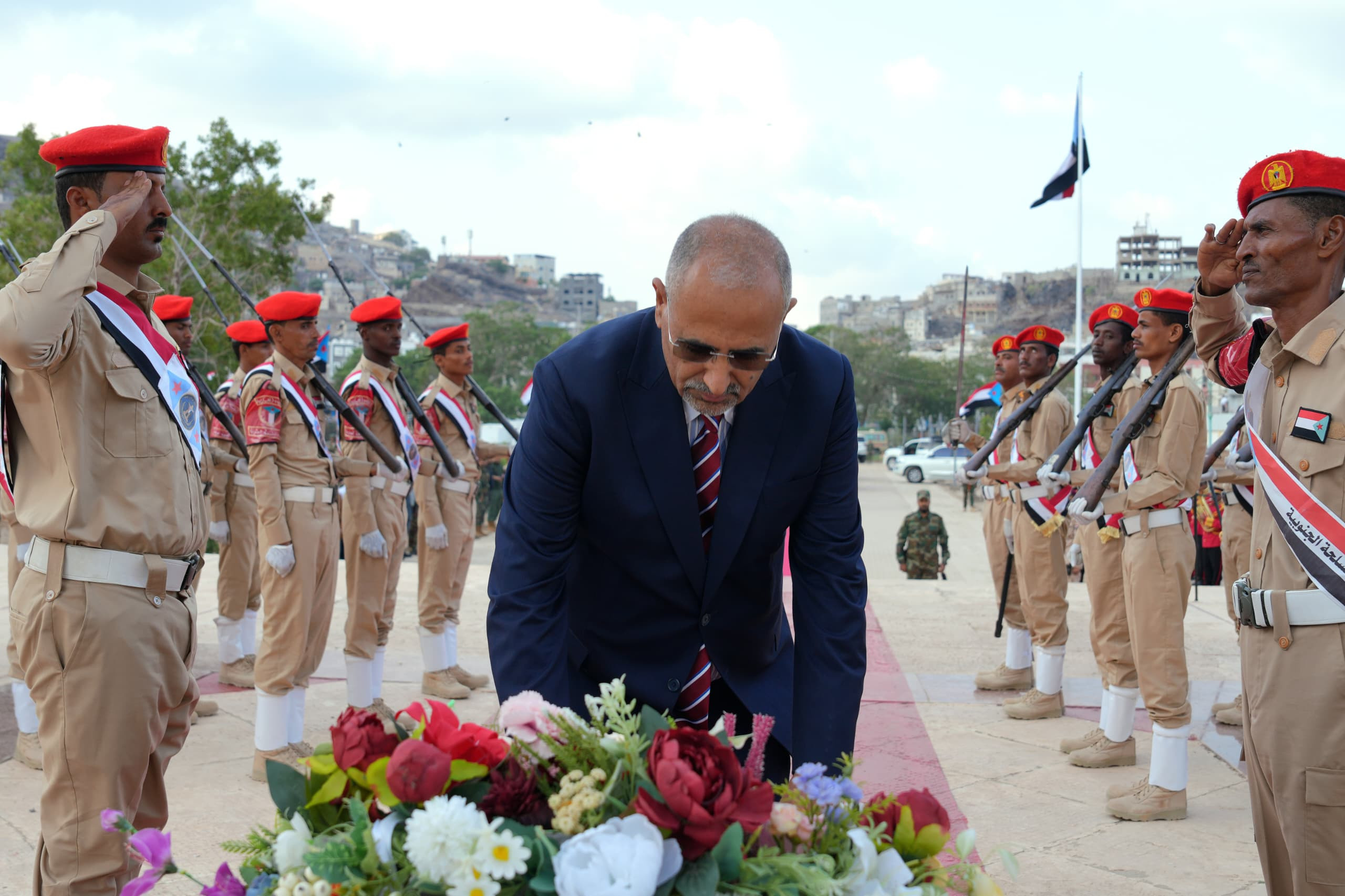 His Excellency President Aidarous Qassem Al-Zubaidi, President of the Southern Transitional Council (STC), Supreme Commander of the Southern Armed Forces, and Vice Chairman of the Presidential Leadership Council (PLC), laid a wreath on Sunday morning at the Martyrs of the South Arabia memorial in the Al-Tawahi district of the capital, Aden, to mark the 58th anniversary of the National Independence Day, 30 November.
