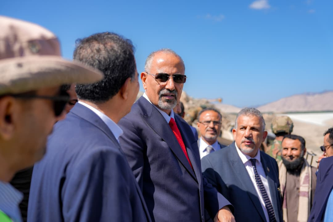 The President was accompanied during his visit to the project by Maj. Gen. Abu Bakr Hussein, Governor of Abyan Governorate; Abdulnasser Al-Ja'ari, a member of the STC Presidium; and Abdulrahman Sheikh, a member of the Supreme Executive Leadership of the STC, along with several governorate undersecretaries.