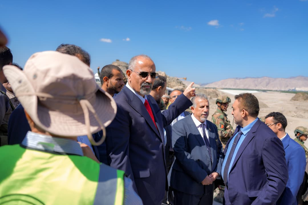 President Aidarous Qassem Al-Zubaidi, President of the Southern Transitional Council (STC) and Vice Chairman of the Presidential Leadership Council (PLC), conducted on Wednesday an on-site inspection of the strategic Hassan Dam project as part of his Excellency's visit to Abyan Governorate.