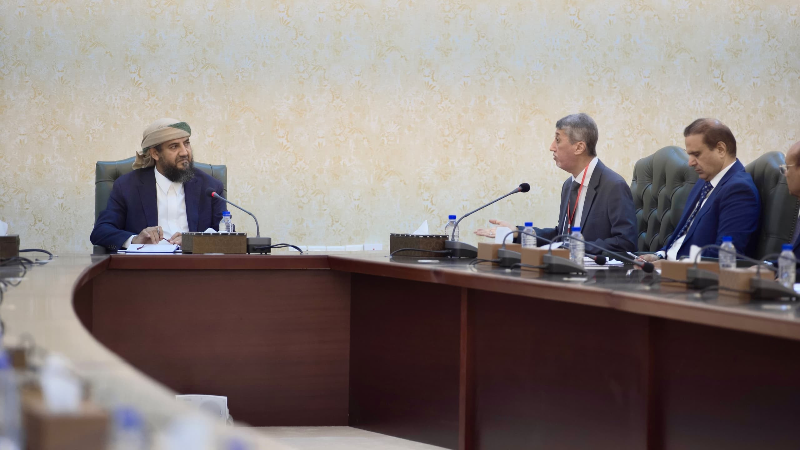 Mr. Al-Muharrami praised the national role of businessmen in supporting the economy and alleviating humanitarian suffering, lauded the efforts of the Central Bank in maintaining currency stability, and gave directives to continue coordination to ensure the protection of citizens' purchasing power and the sustainable availability of goods in the markets.