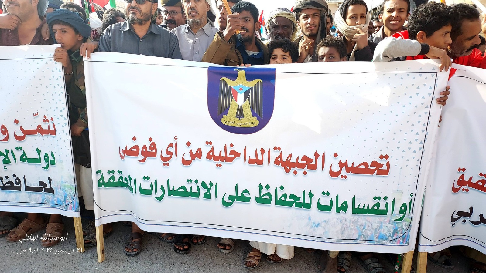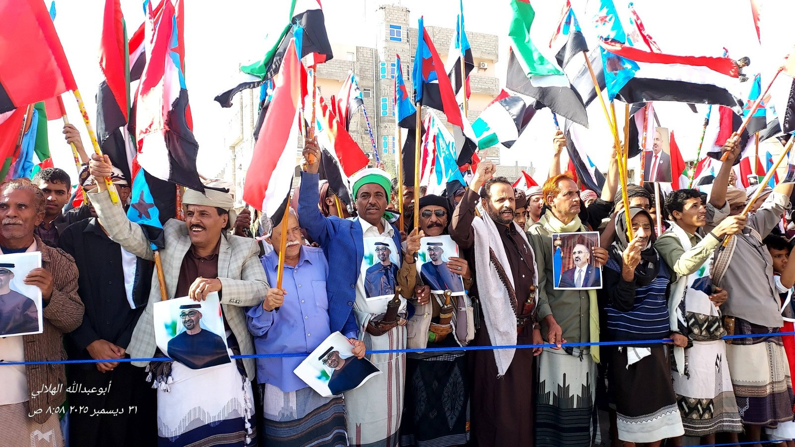 As the masses of the South gather today to celebrate victory and affirm their right, they strongly condemn and denounce the military targeting of the civilian port of Al-Mukalla, as it is a sovereign facility and a lifeline for millions of citizens in Hadhramaut and the South. This act constitutes a threat to security and stability and terrorizes innocent civilians in a rejected behavior that neither serves peace nor reflects the facts on the ground.
