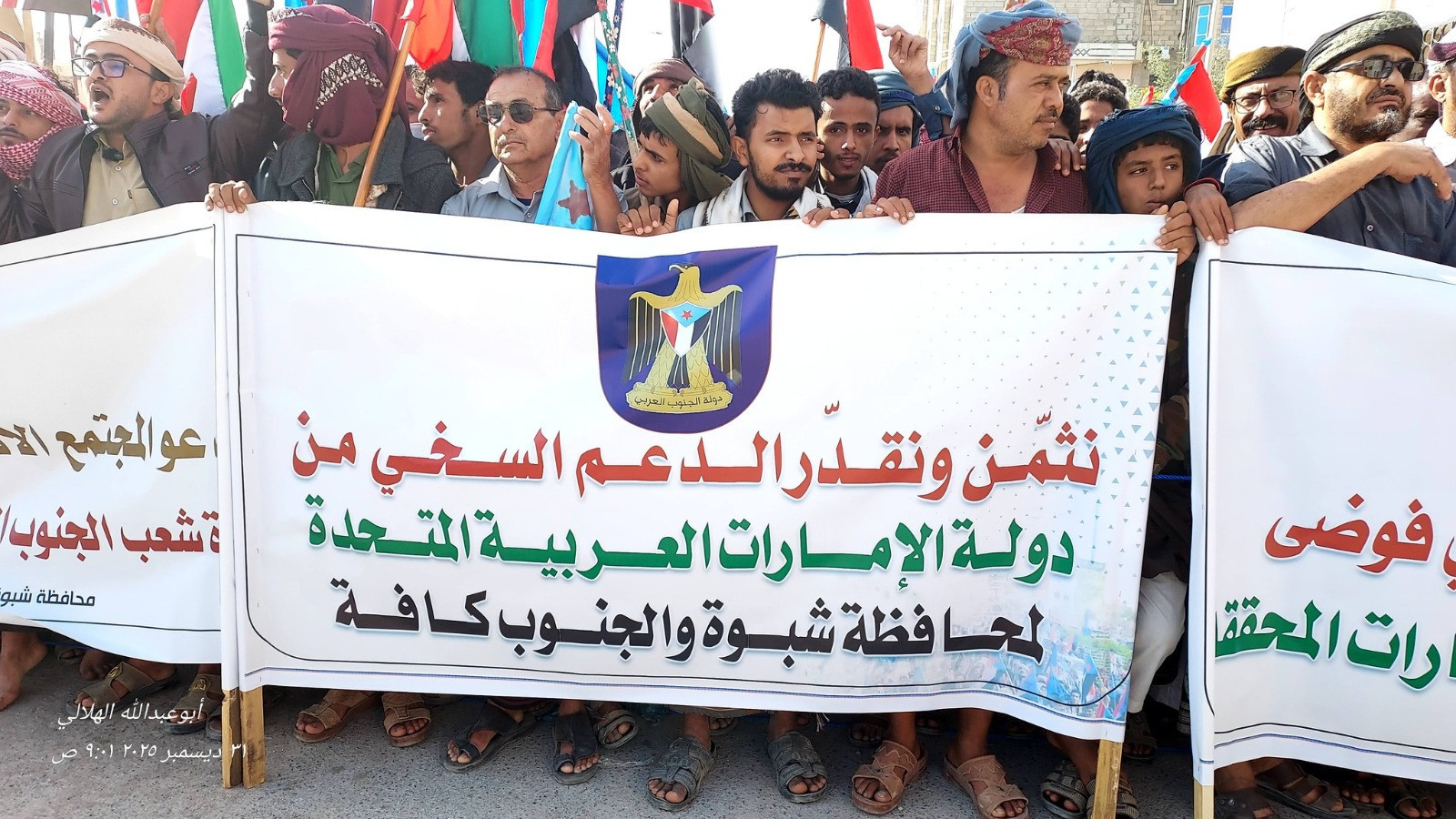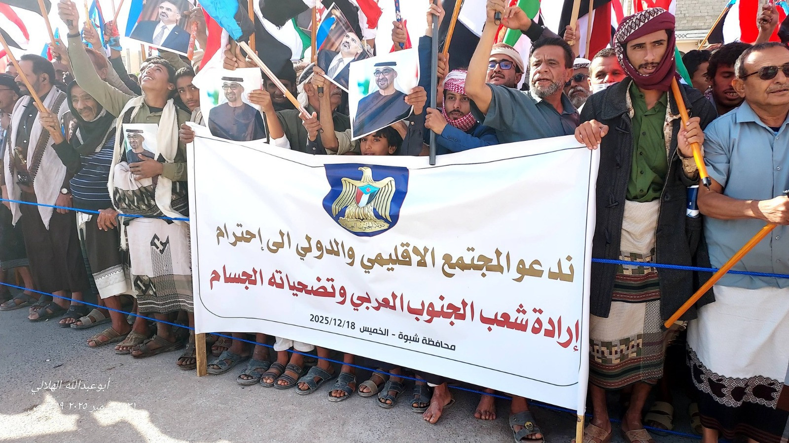Eighthly: The rally participants call upon all citizens of Shabwah Governorate and the people of the South in general, from all social and tribal segments, to fully rally around the Southern Armed Forces as the true guarantor of defending the land and honor and protecting national gains and to be prepared for comprehensive popular mobilization to confront any threats targeting the South, its security, and stability.